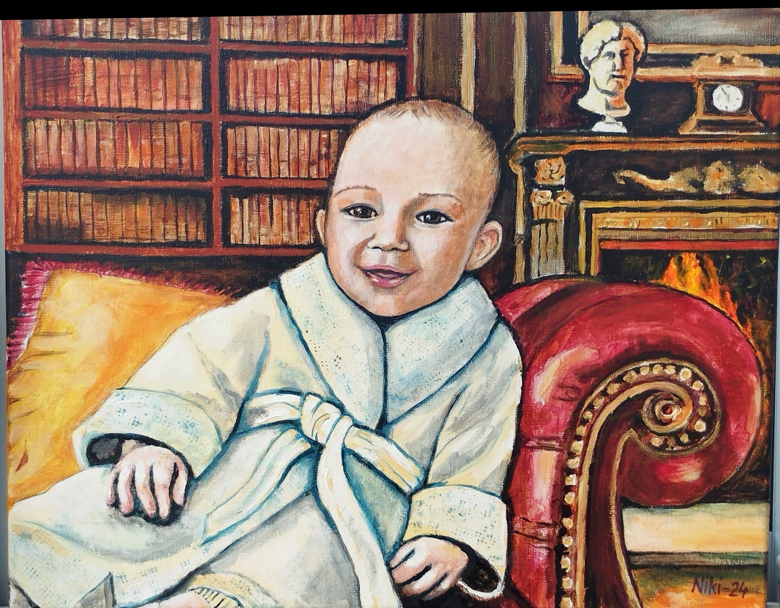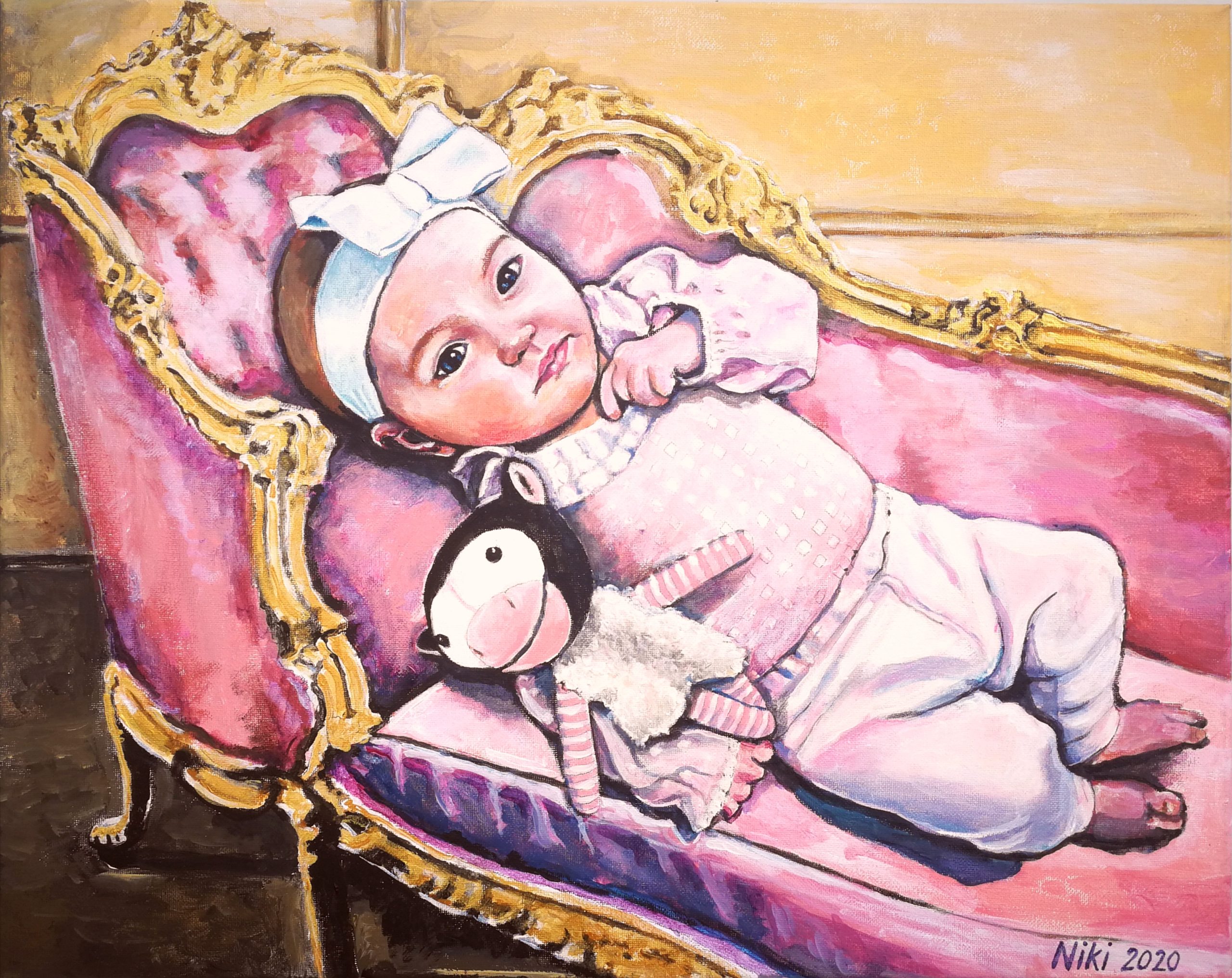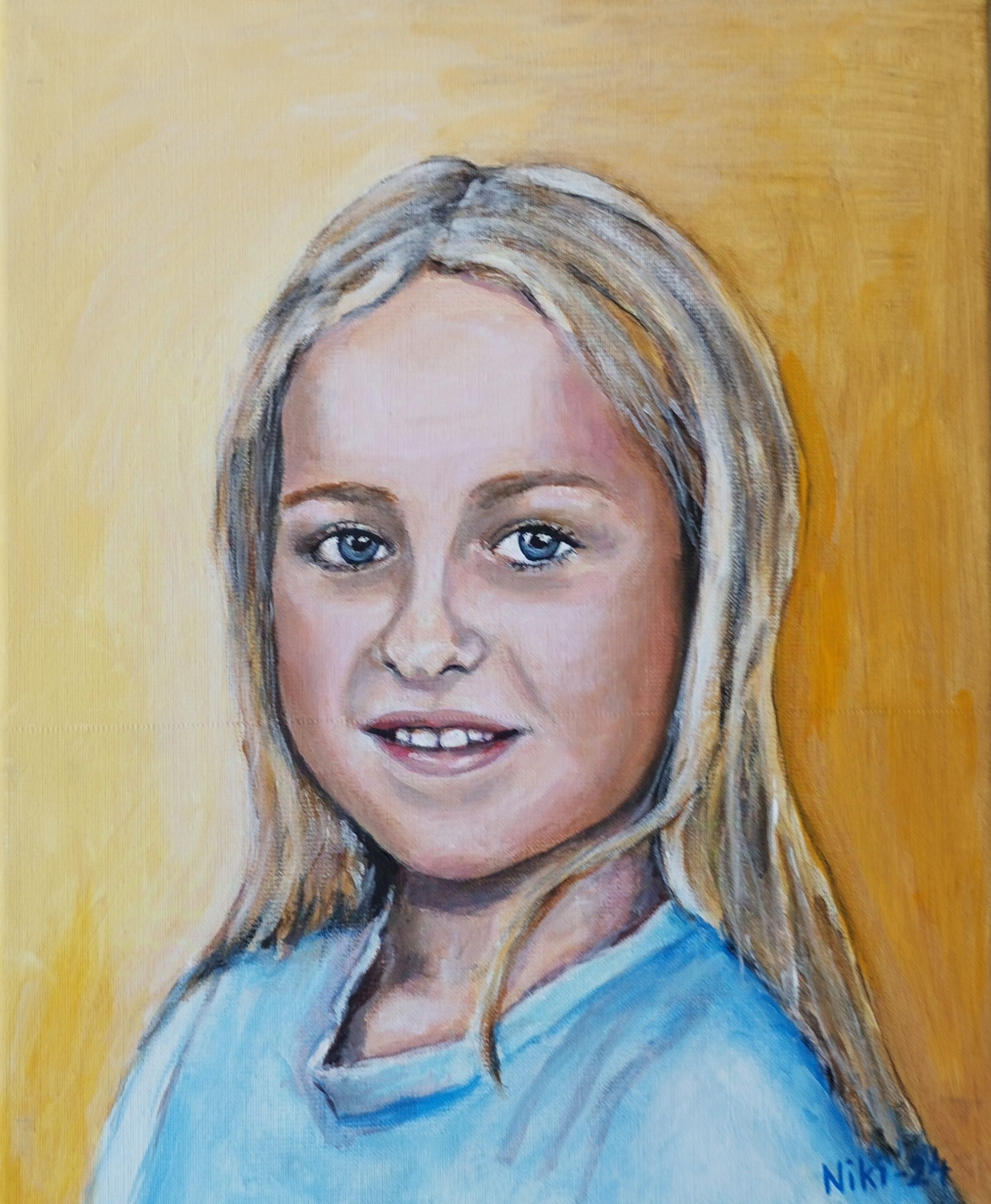 Sedan skapar jag ett konstverk som fångar det unika uttrycket och personligheten. Målningen levereras på rulle, och du får själv låta spänna upp den på en spännram.