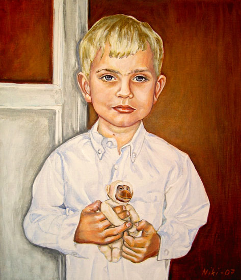 Jag arbetar utifrån fotografier på den som ska målas av.