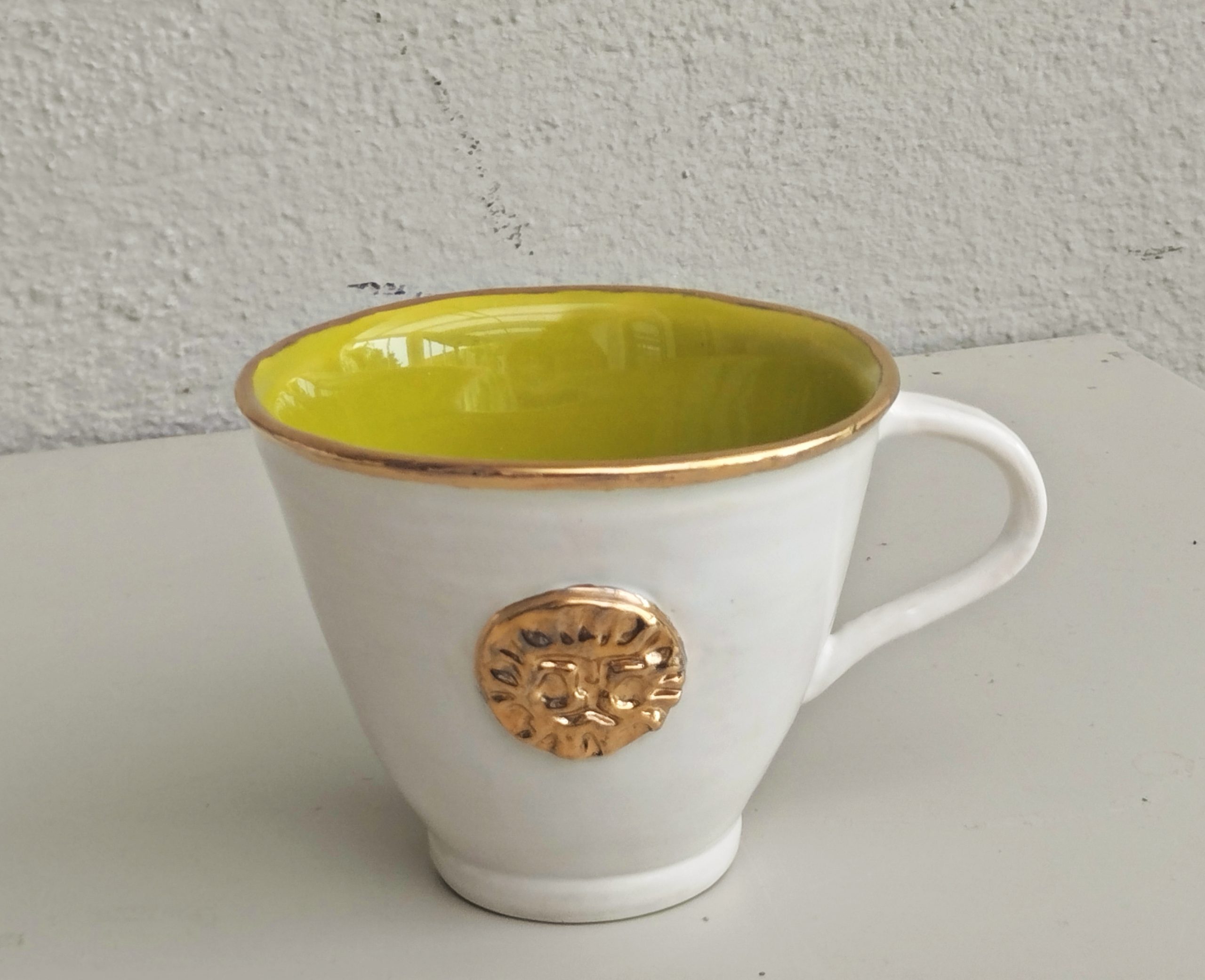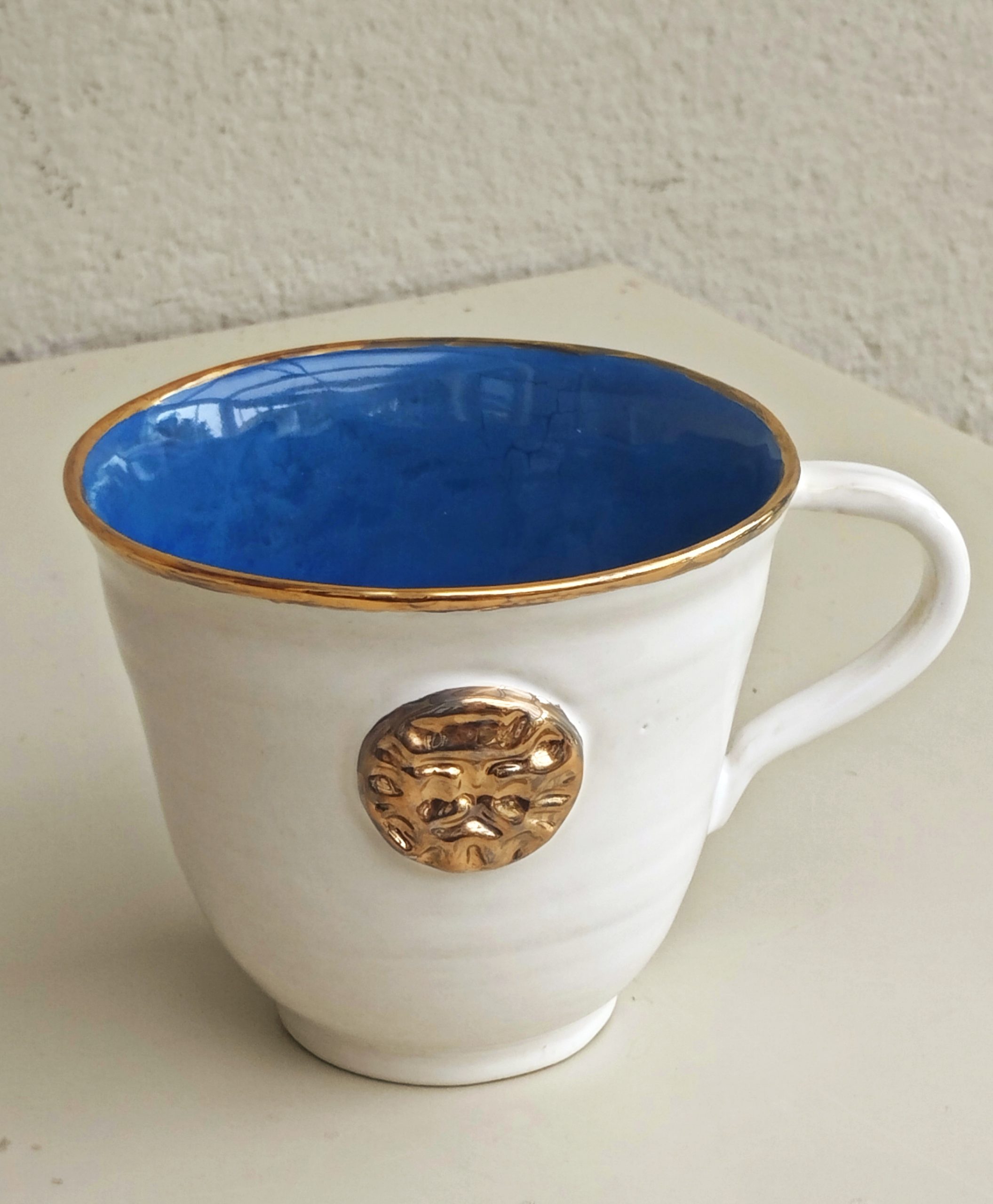 Varje kopp pryds av en unik guldsymbol och en lyxig kant, båda i 12% keramiskt guld som bränns in vid 700° i en tredje bränning.
