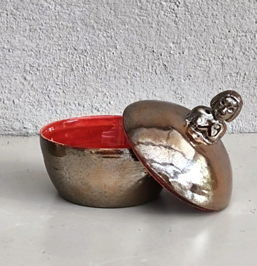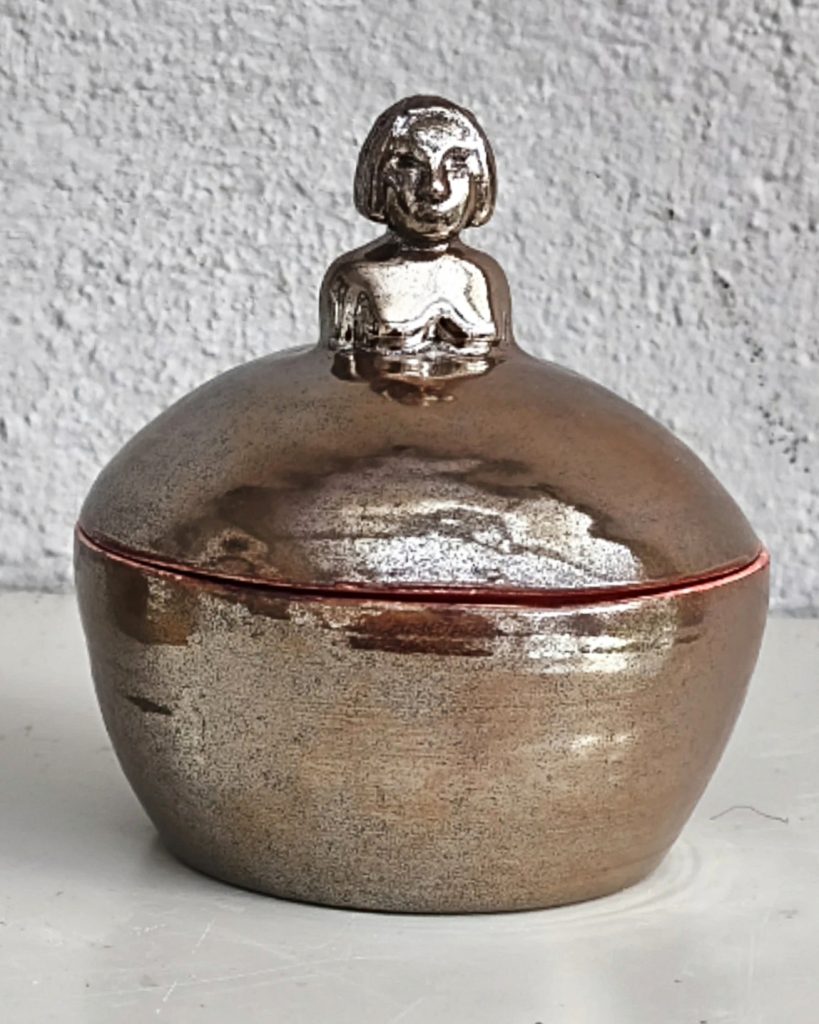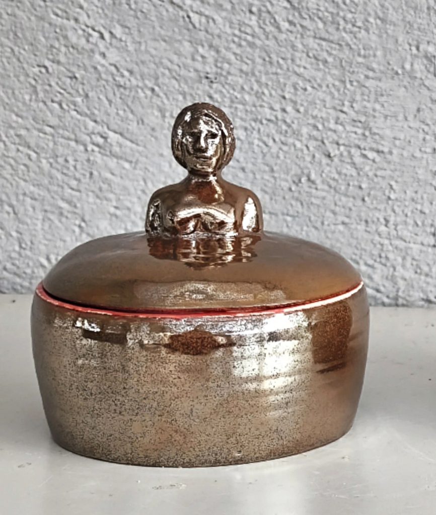 Minerva ii– Keramisk ask med kvinnofigur på locket